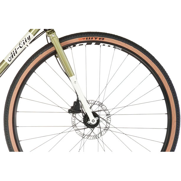 Mit einer speziell entworfenen All-City-Gabelkrone, die elegant mit Vier-Punkt-Gepäckträgerbefestigungen ausgestattet ist.