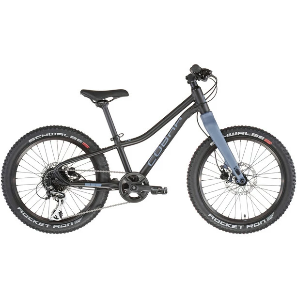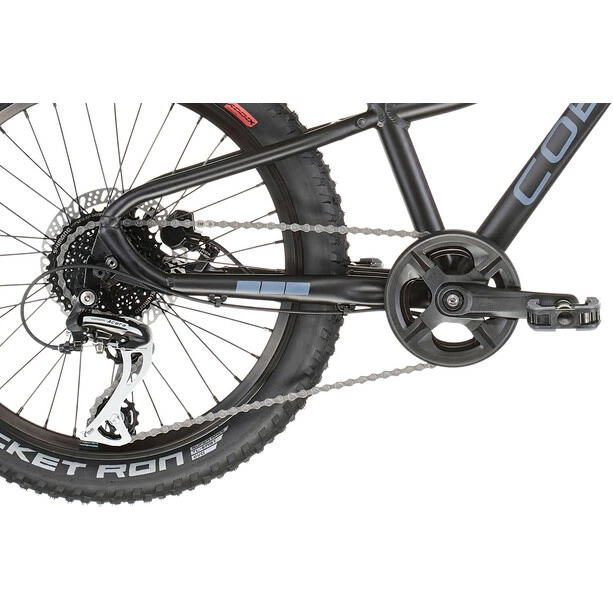 Mit dem Cobra Jura kann der Nachwuchs so richtig Spaß wie die Großen im Gelände haben. Dafür sorgen ein solider, aber leichter Aluminiumrahmen, eine Shimano 8-fach-Schaltung, die die Jüngsten in Kombination mit einer 11-32er Kassette über die Anstiege fliegen lässt und hydraulische Scheibenbremsen, die die Kids bergab wieder sicher zum Stehen bringen. 54 Millimeter breite, profilierte Reifen sorgen für ordentlich Grip und Hohlkammerfelgen für Stabilität.