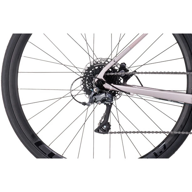 Pfeilschnelles Bike gefällig? Gerne. Abstriche beim Fahrkomfort? Auf keinen Fall. Der mit Scheibenbremsen kompatible Axial WS Rahmen aus doppelt konifizierten Aluminiumrohrsätzen präsentiert sich deshalb als die beste – und voll integrierte – Kombination aus Performance, Komfort und einer Optik, die ihresgleichen sucht. Das konische Steuerrohr und das kreuzovale Unterrohr sorgen für ein präzises Lenkverhalten und starken Vorwärtsdrang. Dabei reduzieren die Vollcarbongabel und die schlanken Sitzstreben etwaige Vibrationen vom Straßenbelag und optimieren so den Fahrkomfort vor allem auf langen Strecken. Fazit: Das Beste aus zwei Welten in einem Chassis vereint!