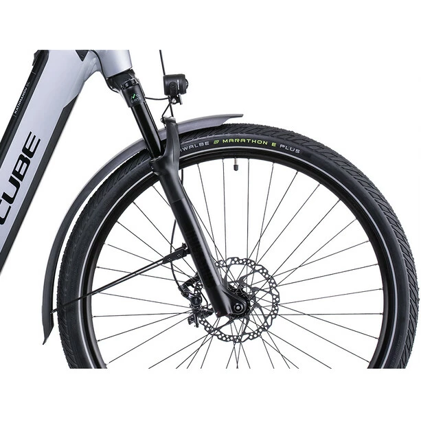Volle Ausstattung für unterschiedlichste Anforderungen und Abenteuer – das brandneue Kathmandu Hybrid SL 750 übertrifft alle Erwartungen. Zu allererst wegen seines Bosch CX Antriebs der vierten Generation mit hochkapazitivem 750 Wh starkem Akku, der dem Bike seinen Vorwärtsschub und die unglaubliche Reichweite verleiht. Und weil dieser Schub wohldosiert sein will, hat Cube sich für eine zuverlässige, breit gefächerte Shimano XT 12-fach Schaltung entschieden, die auf allen Routen und Anstiegen mühelos von Gang zu Gang wechselt. Außerdem für kräftig zupackende hydraulische Shimano XT Scheibenbremsen, die das Bike selbst bei Nässe kontrolliert zum Stehen bringen. Meisterhaft für erstklassigen Fahrkomfort: die Kombination aus RockShox Recon Silver Luftfedergabel, gefederter Sattelstütze und verstellbarem Vorbau. Als Zugabe hat Cube einen elegant integrierten, superbelastbaren Gepäckträger und eine ganze Reihe alltagstauglicher Accessoires verbaut. Fazit: ein Allrounder, wie er im Buche steht!