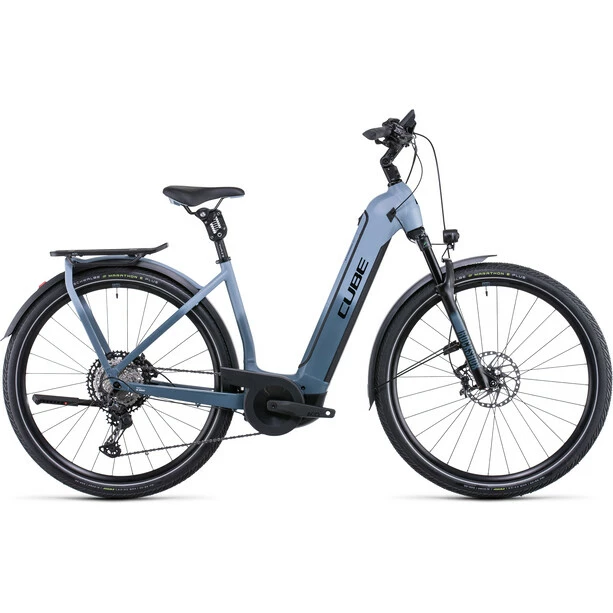 Perfektes noch besser machen, geht das? Cube sagt, das geht, und treten mit dem Kathmandu Hybrid 750 Chassis den Beweis an. Allen verfügbaren Rahmenvarianten gemein ist das Modular Battery System, das sorgfältig überarbeitet wurde und jetzt auch den neuen hochkapazitiven 750 Wh starken Akku dezent im Design verschwinden lässt. Das Ergebnis: sensationelle Reichweite, cleaner Look. Außerdem macht die Efficient Comfort Geometry weiterhin ihrem Namen alle Ehre, weil sie die perfekte Passform für entspanntes und durchwegs komfortables Pedalieren bietet. On top der integrierte Gepäckträger 3.0. Der ist genauso stabil und belastbar wie sein Vorgänger, aber Cube hat ihn jetzt noch nahtloser mit dem hinteren Schutzblech verschmolzen, für eine unwiderstehlich elegante und zugleich unaufgeregte Optik. Dazu versprechen die RockShox Recon Gold RL Luftfedergabel, die gefederte BySchulz Sattelstütze und der verstellbare Vorbau angenehmen Fahrkomfort. Den letzten Schliff verleihen dem Bike sein integrierter Gepäckträger 3.0, Schutzbleche, ein Seitenständer und das Lichtsystem. Bleibt die Frage zum Ziel der nächsten Tour!
