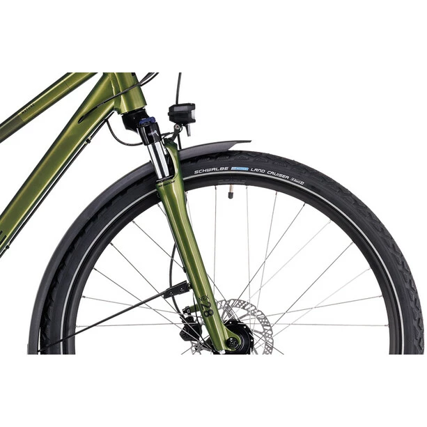 Je leichter ein Bike, desto besser sein Fahrverhalten – deshalb besteht der Nature Allroad Rahmen auch aus doppelt konfizierten Aluminiumrohren. Der Vorteil: wenig Gewicht, ohne dass Stabilität und Langlebigkeit verloren gehen. Außerdem lässt er genügend Platz für bis zu 50 mm breite Reifen für höheren Fahrkomfort und hat ein konisches Steuerrohr für 1a-Lenkpräzision. Bei CUBE findet man auch, dass ein Bike am besten genauso gut aussieht, wie es sich fährt. Somit unterstreichen nicht nur die im Smooth Welding Verfahren gefertigten Rohrverbindungen den anmutigen Look, sondern auch die eleganten Verbindungspunkte für das mitgelieferte Zubehör. Und dass das Chassis – wie übrigens alle Rahmen von CUBE – sämtliche Sicherheitstests nicht nur mit Bravour bestanden, sondern die Anforderungen sogar übertroffen hat, versteht sich für eigentlich fast von selbst. Damit bist du gleich noch entspannter unterwegs – und länger!