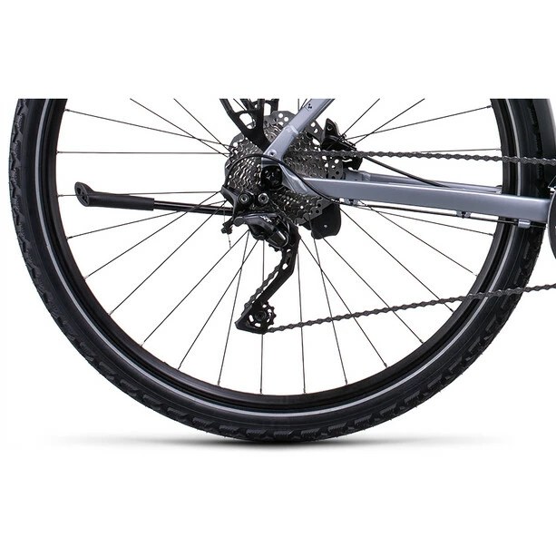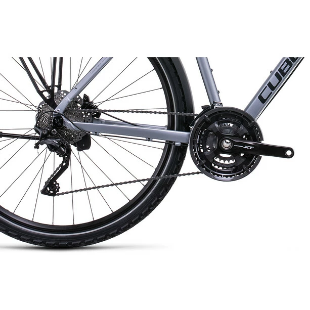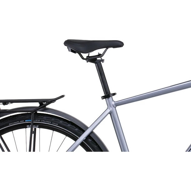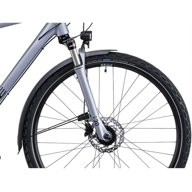 Je leichter ein Bike, desto besser sein Fahrverhalten. Deshalb besteht der Nature Allroad Rahmen auch aus doppelt konfizierten Aluminiumrohren, was sein Gewicht niedrig hält, ohne dass Belastbarkeit und Langlebigkeit verloren gehen. Er bietet zudem genügend Reifenfreiheit für bis zu 50 mm breite Reifen und damit mehr Fahrkomfort sowie ein konisches Steuerrohr für 1a-Lenkpräzision. Cube findet außerdem, dass ein Bike genauso gut aussehen sollte, wie es sich fährt. Somit unterstreichen neben den im Smooth Welding Verfahren konstruierten Hauptgelenken elegante Montagepunkte für das mitgelieferte Zubehör den anmutigen Look. Und dass das Chassis – wie alle ihre Rahmen übrigens – die strengen hauseigenen Sicherheitstests mit Bravour bestanden hat, versteht sich von selbst. Damit fährt es sich gleich noch entspannter. Und länger!