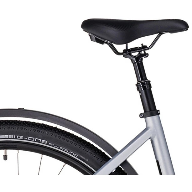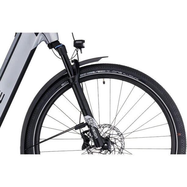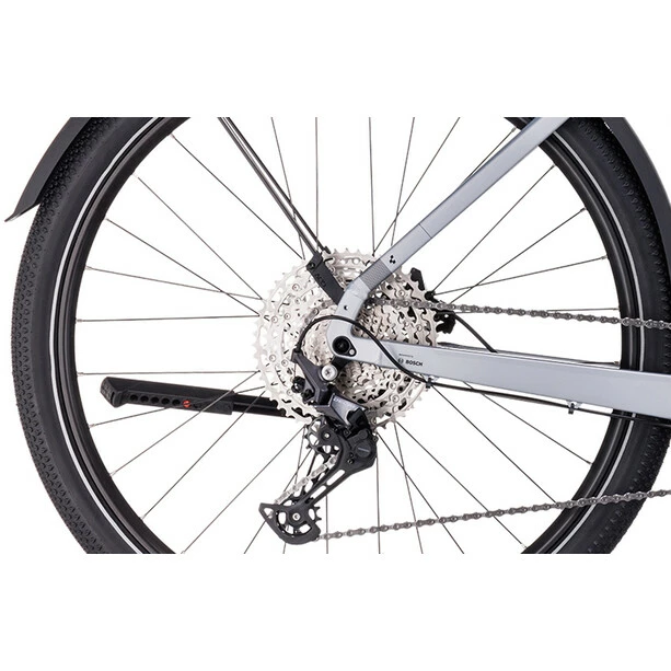 Das Modular Battery System des Nuride Hybrid Pro Allroad wurde im Hinblick auf einfaches Handling, hohen Komfort und ein elegantes Erscheinungsbild konzipiert. Dieses Konzept geht auf: Der Bosch PowerTube Akku verschwindet formschön und dezent im Chassis, egal ob Tiefeinsteiger, Trapezversion oder klassischer Herrenrahmen. Zudem ist es komplett mit dem neuen Smart System von Bosch kompatibel. Damit du für jede Tour und Fahrt optimal gerüstet bist, wurde dem Bike zudem praktisches Zubehör spendiert: Schutzbleche, eine Lichtanlage und einen Seitenständer. Und die Efficient Comfort Geometry sorgt für einen erwartungsgemäß hohen Fahrkomfort, egal ob in der City oder bei Wochenendausflügen ins Grüne.