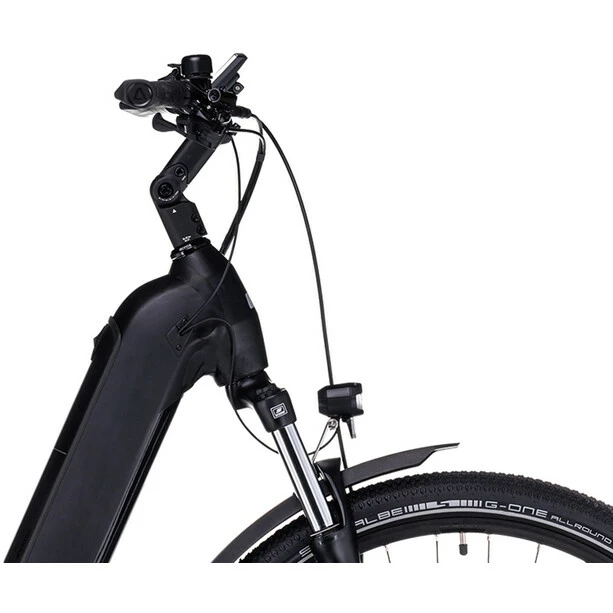 Das Modular Battery System des Nuride Hybrid Pro Allroad wurde im Hinblick auf einfaches Handling, hohen Komfort und ein elegantes Erscheinungsbild konzipiert. Dieses Konzept geht auf: Der Bosch PowerTube Akku verschwindet formschön und dezent im Chassis, egal ob Tiefeinsteiger, Trapezversion oder klassischer Herrenrahmen. Zudem ist es komplett mit dem neuen Smart System von Bosch kompatibel. Damit du für jede Tour und Fahrt optimal gerüstet bist, wurde dem Bike zudem praktisches Zubehör spendiert: Schutzbleche, eine Lichtanlage und einen Seitenständer. Und die Efficient Comfort Geometry sorgt für einen erwartungsgemäß hohen Fahrkomfort, egal ob in der City oder bei Wochenendausflügen ins Grüne.