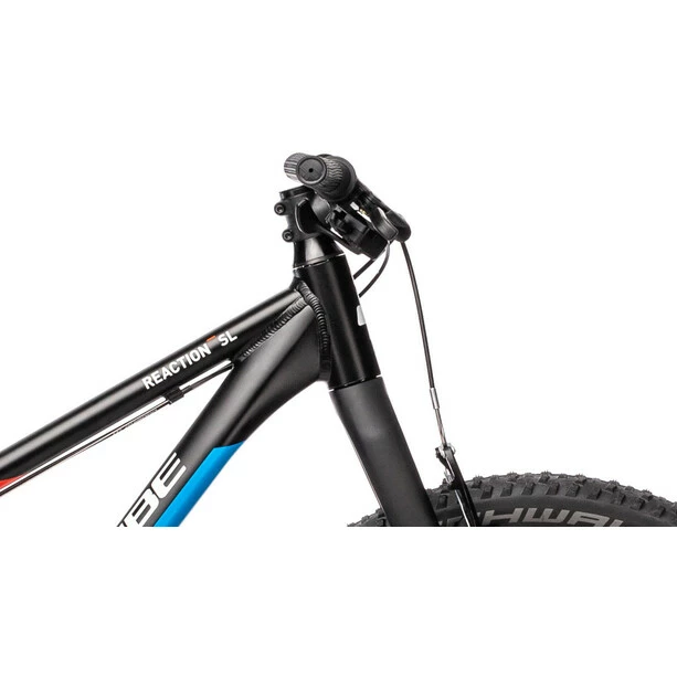 CUBE lässt sich bei der Entwicklung ihrer Produkte nicht lumpen, deshalb besteht der Reaction 240 SL Rahmen auch aus denselben hitzebehandelten 6061er Aluminiumrohrsätzen wie die Performance Erwachsenenmodelle. Und CUBE hat deren Form für das optimale Verhältnis von Steifigkeit zu Gewicht mit demselben mechanischen Formverfahren angepasst. Ein weiteres Highlight ist das austauschbare Schaltauge, wordurch man nach einem kleinen Sturz nicht gleich den ganzen Rahmen kostspielig reparieren lassen muss. Und wer sich noch mehr Grip, Komfort und Sicherheit wünscht, kann das Chassis auch mit breiteren Reifen ausrüsten.