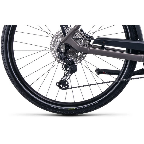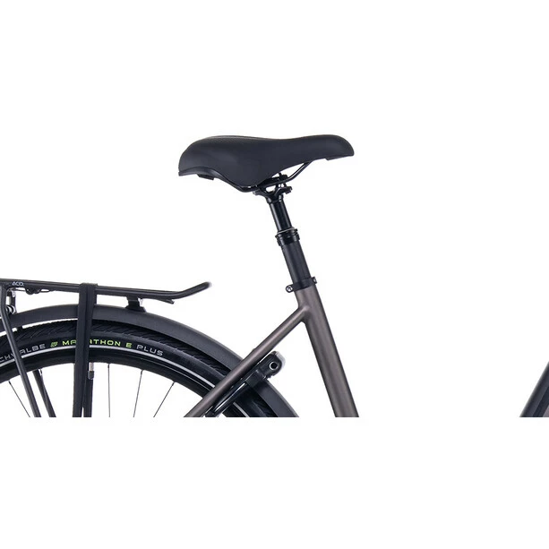 Im Zentrum des clean designten, funktionellen Supreme Sport Hybrid SL Rahmens steht der leistungsstarke, geschmeidig arbeitende Bosch CX Motor. Sein Powertube Design kann Bosch Akkus mit bis zu 625 Wh aufnehmen, damit dem Bike bei langen Touren nicht der Saft ausgeht. Außerdem macht dieser Tiefeinsteiger seinem Namen alle Ehre – bequemes und schnelles Aufsitzen und Losradeln ist damit selbstverständlich. Zugunsten erstklassiger Lenkpräzision, einfachem, intuitivem Handling sowie Robustheit und Sicherheit hat sich Cube für ein konifiziertes Steuerrohr entschieden. Und sie haben einen semi-integrierten Gepäckträger verbaut und den Hinterbau speziell für die Verwendung mit einer Kettenschaltung konzipiert. Praktisch und funktionell ist gut, aber nicht alles. Für einen authentischen, eleganten Look hat Cube das Smooth Welding Verfahren angewendet.