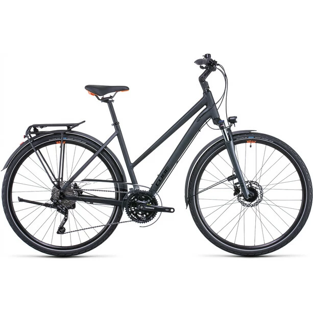 Das Touring EXC ist Cubes vielseitiger Allrounder mit einer leichtgängigen und super zuverlässigen Shimano Deore 3×10-Schaltung und kraftvoll zupackenden, wetterunabhängig arbeitenden hydraulischen Scheibenbremsen. Das – wie auch der Rest der Ausstattung – machen es zum perfekten Partner für den Alltag oder auch längere Abenteuertouren. Bei Ausfahrten über Land spielt die Suntour Federgabel mit Lockout ihre Qualitäten aus, weil sie sämtliche Buckel und Löcher auf holprigen Feldwegen einfach wegschluckt. Und auf dem elegant integrierten Gepäckträger finden Tasche oder Rucksack Platz. Lange Schutzbleche sorgen dafür, dass Hose und Shirt zuverlässig sauber und trocken bleiben. Last, but not least: das dynamogespeiste Lichtsystem zum „Sehen und gesehen werden“. Und? Wohin geht’s am Wochenende?