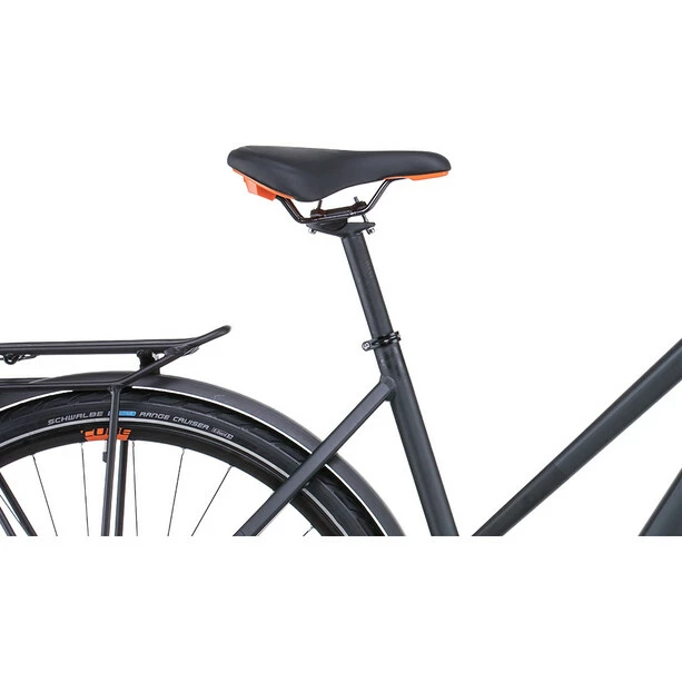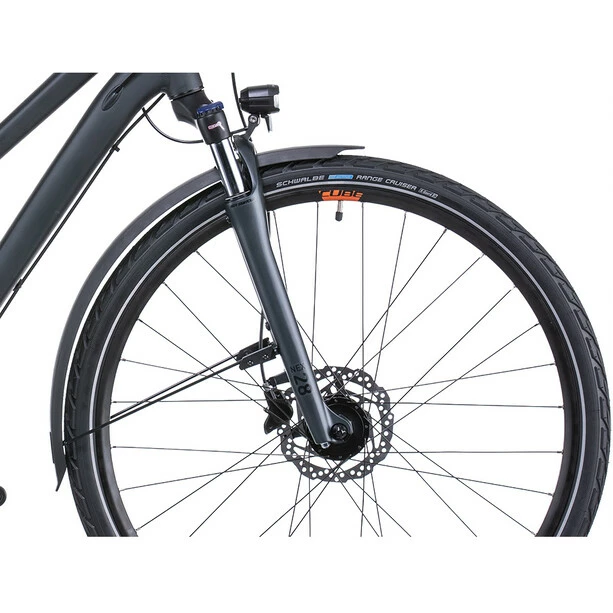 Das Herzstück der Touring Serie ist der hochwertige, leichte Rahmen aus doppelt konifizierten Aluminiumrohren. Die Efficient Comfort Geometry sorgt dabei für Leichtigkeit, Effizienz und Fahrkomfort, was sich besonders an langen Tagen im Sattel bezahlt macht. Zugleich überrascht der Rahmen mit seiner Agilität und dem intuitiven Handling. Die Version mit tiefem Einstieg sieht nicht nur gut aus, sondern erleichtert auch das Auf- und Absteigen. Zusätzlich gibt es das Modell als sportlichen Trapezrahmen und klassischen Herren Diamantrahmen in fünf verschiedenen Größen. Alle Varianten verfügen über einen eleganten Gepäckträger und ins Unterrohr verlegte Züge, damit die Schaltung dauerhaft präzise arbeitet und ohne großen Wartungsaufwand auskommt.