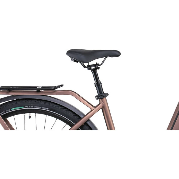 Beim Touring Hybrid findet jeder die Rahmenvariante, die auf seine individuellen Anforderungen passt – es gibt ihn als klassischen Herrenrahmen, als Trapezversion oder als Tiefeinsteiger. Alle drei Optionen wurden mit viel Liebe zum Detail konzipiert und bei allen dreien wurden der kraftvolle Bosch Motor (Generation 3) und Powertube Akku so platziert, dass der Schwerpunkt möglichst tief liegt und damit ein sicheres und einfaches Handling gewährleistet ist. Bei der Efficient Comfort Geometry ist der Name Programm: Sie ergibt ein E-Bike, das sich genauso gut fährt, wie es aussieht. Das Tüpfelchen auf dem I ist der stabile Gepäckträger, der formschön und dezent in den Rahmen integriert wurde und auf dem alles Platz nimmt, was unterwegs mit muss.