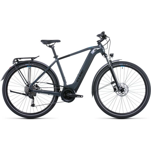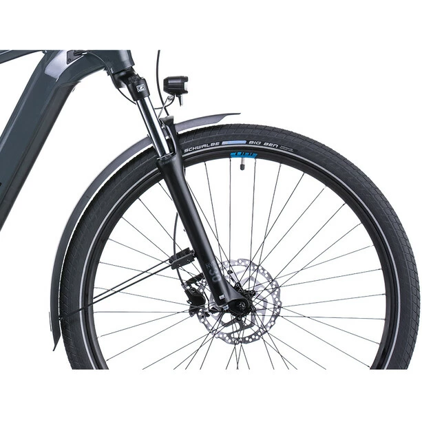 Egal wohin die Reise geht, das Touring Hybrid ONE ebnet den Weg – und zwar mit einer Extraportion Style und Komfort. Der leistungsstarke Bosch Motor samt Powertube Akku macht in Kombination mit der zuverlässigen, einfach zu bedienenden Shimano 9-Gang Schaltung jede Tour zum kraftsparenden Vergnügen. Und weil nicht nur das Vorwärts zählt, haben wir dem Bike kräftig zupackende hydraulische Scheibenbremsen von Shimano gegeben – für kontrolliertes Bremsen bei jedem Wetter. Stichwort Wetter: Dank langer Schutzbleche bleiben die Klamotten unterwegs immer sauber und trocken. Auch für top Fahrkomfort ist gesorgt. Die Federgabel mit 100 mm Federweg sowie breite, griffige Reifen bügeln sämtliche Unebenheiten auf der Straße glatt. Dazu kommen ein Beleuchtungssstem, ein Seitenständer und der Gepäckträger, auf dem sämtliches Hab und Gut bequem und sicher Platz findet. Dann kann’s ja eigentlich losgehen, oder?