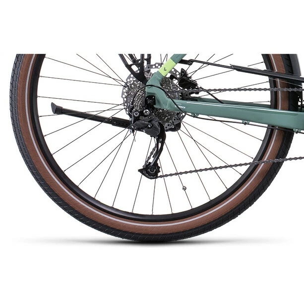 Egal wohin die Reise geht, das Touring Hybrid ONE ebnet den Weg – und zwar mit einer Extraportion Style und Komfort. Der leistungsstarke Bosch Motor samt Powertube Akku macht in Kombination mit der zuverlässigen, einfach zu bedienenden Shimano 9-Gang Schaltung jede Tour zum kraftsparenden Vergnügen. Und weil nicht nur das Vorwärts zählt, haben wir dem Bike kräftig zupackende hydraulische Scheibenbremsen von Shimano gegeben – für kontrolliertes Bremsen bei jedem Wetter. Stichwort Wetter: Dank langer Schutzbleche bleiben die Klamotten unterwegs immer sauber und trocken. Auch für top Fahrkomfort ist gesorgt. Die Federgabel mit 100 mm Federweg sowie breite, griffige Reifen bügeln sämtliche Unebenheiten auf der Straße glatt. Dazu kommen ein Beleuchtungssstem, ein Seitenständer und der Gepäckträger, auf dem sämtliches Hab und Gut bequem und sicher Platz findet. Dann kann’s ja eigentlich losgehen, oder?