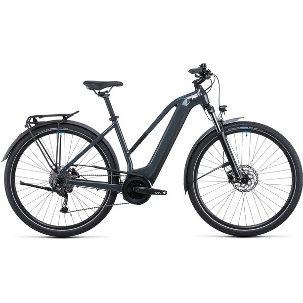Beim Touring Hybrid ONE liegt der Schwerpunkt tief, was ein sicheres und intuitives Handling ermöglicht, außerdem fügt sich der kraftvolle Bosch Motor der dritten Generation samt Powertube Akku formschön und dezent ins Rahmendesign ein. Es gibt ihn als klassischen Herrenrahmen, Trapezversion oder Tiefeinsteiger und jeweils in verschiedenen Größen – damit hat Cube für alle Vorlieben und Ansprüche die perfekte Passform im Programm. Bei allen Rahmenvarianten wurde durch die Efficent Comfort Geometry eine natürliche Sitzposition erreicht, das Ergebnis: angenehmer Fahrkomfort, egal ob für die kurze Einkaufstour oder bei längeren Ausfahrten am Wochenende. Die Federgabel mit 100 mm Federweg sowie breite, griffige Reifen bügeln sämtliche Unebenheiten auf der Straße glatt. Dazu kommen ein Beleuchtungssstem, ein Seitenständer und der Gepäckträger, auf dem sämtliches Hab und Gut bequem und sicher Platz findet. Dann kann’s ja eigentlich losgehen, oder?