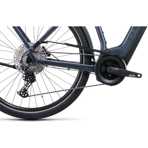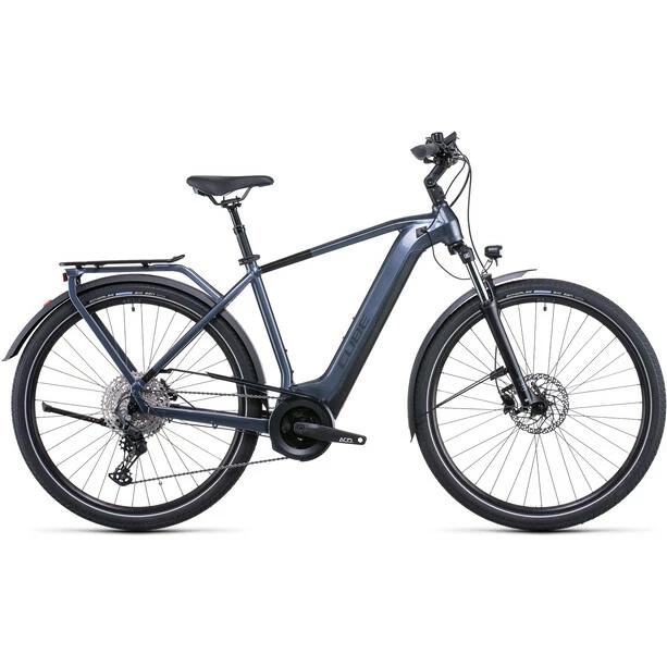 Ein wirklich gutes Bike ist auch ein wirklich vielseitiges Bike, so viel steht fest. So vielseitig wie das Touring Hybrid Pro. Seine breit gefächerte Deore 11-fach Schaltung von Shimano arbeitet harmonisch Hand in Hand mit dem leistungsstarken Bosch Motor der dritten Generation samt Powertube Akku. Kraftvolle hydraulische Shimano Scheibenbremsen sorgen für sichere Bremsvorgänge bei jeder Witterung. Eine Extraportion Alltags- und Verkehrstauglichkeit bringen der stabile Gepäckträger, Lichter und ein Seitenständer mit, außerdem lange Schutzbleche, die das Outfit vor Dreck und Nässe bewahren. Und weil vor allem auf langen Ausfahrten hoher Fahrkomfort unerlässlich ist, hat Cube dem Bike einen verstellbaren Vorbau, eine gefederte Sattelstütze, eine Federgabel mit 100 mm Federweg und große, griffige Reifen verpasst.