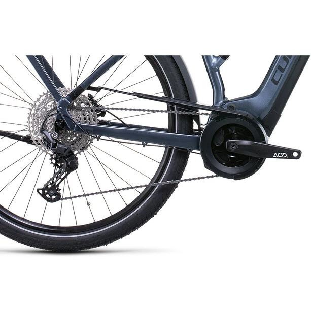 Ein wirklich gutes Bike ist auch ein wirklich vielseitiges Bike, so viel steht fest. So vielseitig wie das Touring Hybrid Pro. Seine breit gefächerte Deore 11-fach Schaltung von Shimano arbeitet harmonisch Hand in Hand mit dem leistungsstarken Bosch Motor der dritten Generation samt Powertube Akku. Kraftvolle hydraulische Shimano Scheibenbremsen sorgen für sichere Bremsvorgänge bei jeder Witterung. Eine Extraportion Alltags- und Verkehrstauglichkeit bringen der stabile Gepäckträger, Lichter und ein Seitenständer mit, außerdem lange Schutzbleche, die das Outfit vor Dreck und Nässe bewahren. Und weil vor allem auf langen Ausfahrten hoher Fahrkomfort unerlässlich ist, hat Cube dem Bike einen verstellbaren Vorbau, eine gefederte Sattelstütze, eine Federgabel mit 100 mm Federweg und große, griffige Reifen verpasst.