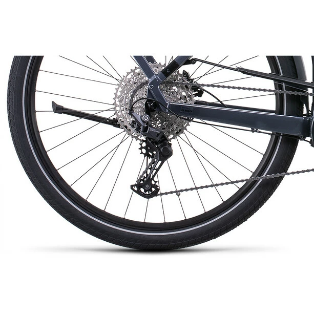Ein wirklich gutes Bike ist auch ein wirklich vielseitiges Bike, so viel steht fest. So vielseitig wie das Touring Hybrid Pro. Seine breit gefächerte Deore 11-fach Schaltung von Shimano arbeitet harmonisch Hand in Hand mit dem leistungsstarken Bosch Motor der dritten Generation samt Powertube Akku. Kraftvolle hydraulische Shimano Scheibenbremsen sorgen für sichere Bremsvorgänge bei jeder Witterung. Eine Extraportion Alltags- und Verkehrstauglichkeit bringen der stabile Gepäckträger, Lichter und ein Seitenständer mit, außerdem lange Schutzbleche, die das Outfit vor Dreck und Nässe bewahren. Und weil vor allem auf langen Ausfahrten hoher Fahrkomfort unerlässlich ist, haben wir dem Bike einen verstellbaren Vorbau, eine gefederte Sattelstütze, eine Federgabel mit 100 mm Federweg und große, griffige Reifen verpasst.
