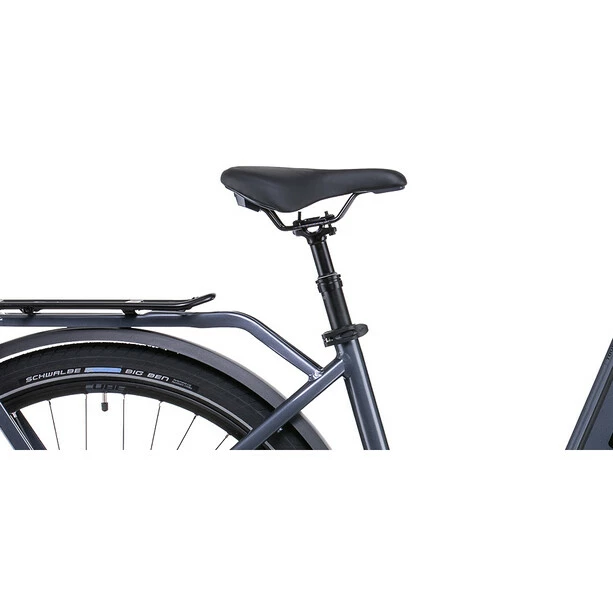 Beim Touring Hybrid findet jeder die Rahmenvariante, die auf seine individuellen Anforderungen passt – es gibt ihn als klassischen Herrenrahmen, als Trapezversion oder als Tiefeinsteiger. Alle drei Optionen wurden mit viel Liebe zum Detail konzipiert und bei allen dreien wurden der kraftvolle Bosch Motor (Generation 3) und Powertube Akku so platziert, dass der Schwerpunkt möglichst tief liegt und damit ein sicheres und einfaches Handling gewährleistet ist. Bei unserer Efficient Comfort Geometry ist der Name Programm: Sie ergibt ein E-Bike, das sich genauso gut fährt, wie es aussieht. Das Tüpfelchen auf dem I ist der stabile Gepäckträger, der formschön und dezent in den Rahmen integriert wurde und auf dem alles Platz nimmt, was unterwegs mit muss.
