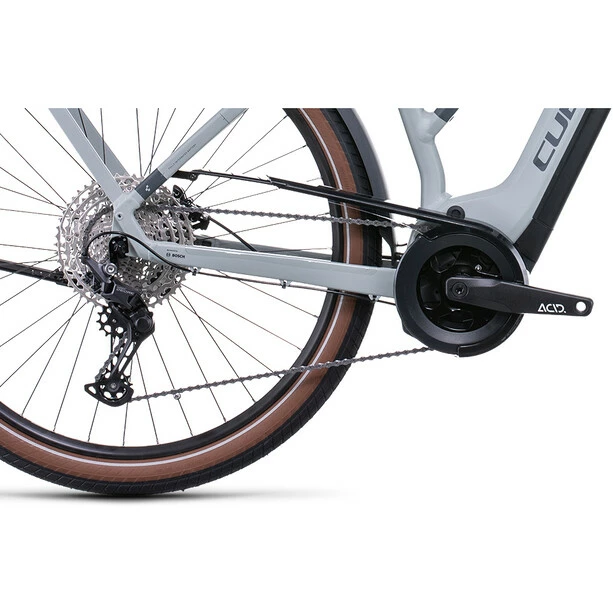 Ein wirklich gutes Bike ist auch ein wirklich vielseitiges Bike, so viel steht fest. So vielseitig wie das Touring Hybrid Pro. Seine breit gefächerte Deore 11-fach Schaltung von Shimano arbeitet harmonisch Hand in Hand mit dem leistungsstarken Bosch Motor der dritten Generation samt Powertube Akku. Kraftvolle hydraulische Shimano Scheibenbremsen sorgen für sichere Bremsvorgänge bei jeder Witterung. Eine Extraportion Alltags- und Verkehrstauglichkeit bringen der stabile Gepäckträger, Lichter und ein Seitenständer mit, außerdem lange Schutzbleche, die das Outfit vor Dreck und Nässe bewahren. Und weil vor allem auf langen Ausfahrten hoher Fahrkomfort unerlässlich ist, hat Cube dem Bike einen verstellbaren Vorbau, eine gefederte Sattelstütze, eine Federgabel mit 100 mm Federweg und große, griffige Reifen verpasst.