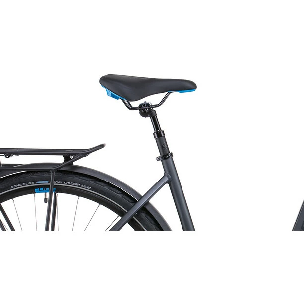 Das Herzstück der Touring Serie ist der hochwertige, leichte Rahmen aus doppelt konifizierten Aluminiumrohren. Die Efficient Comfort Geometry sorgt dabei für Leichtigkeit, Effizienz und Fahrkomfort, was sich besonders an langen Tagen im Sattel bezahlt macht. Zugleich überrascht der Rahmen mit seiner Agilität und dem intuitiven Handling. Die Version mit tiefem Einstieg sieht nicht nur gut aus, sondern erleichtert auch das Auf- und Absteigen. Zusätzlich gibt es das Modell als sportlichen Trapezrahmen und klassischen Herren Diamantrahmen in fünf verschiedenen Größen. Alle Varianten verfügen über einen eleganten Gepäckträger und ins Unterrohr verlegte Züge, damit die Schaltung dauerhaft präzise arbeitet und ohne großen Wartungsaufwand auskommt.
