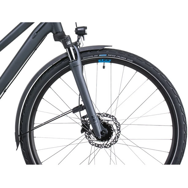 Das Herzstück der Touring Serie ist der hochwertige, leichte Rahmen aus doppelt konifizierten Aluminiumrohren. Die Efficient Comfort Geometry sorgt dabei für Leichtigkeit, Effizienz und Fahrkomfort, was sich besonders an langen Tagen im Sattel bezahlt macht. Zugleich überrascht der Rahmen mit seiner Agilität und dem intuitiven Handling. Die Version mit tiefem Einstieg sieht nicht nur gut aus, sondern erleichtert auch das Auf- und Absteigen. Zusätzlich gibt es das Modell als sportlichen Trapezrahmen und klassischen Herren Diamantrahmen in fünf verschiedenen Größen. Alle Varianten verfügen über einen eleganten Gepäckträger und ins Unterrohr verlegte Züge, damit die Schaltung dauerhaft präzise arbeitet und ohne großen Wartungsaufwand auskommt.