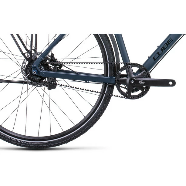 Auch wenn es auf den ersten Blick vielleicht so aussieht: Das Travel EXC ist kein gewöhnlicher Sporttourer. Dank seinem leichten, vielseitigen Rahmen, 700C Laufrädern, einer robusten Shimano Alfine 8-Gang Nabenschaltung und dem super langlebigen Gates CDX Zahnriemen gehören rasselnde, ölige Ketten der Vergangenheit an. Die Reifenfreiheit nimmt robuste, komfortable Reifen bis zu einer Größe von 42×622 auf – inklusive extralanger Schutzbleche. Und die kraftvollen hydraulischen Scheibenbremsen von Shimano verzögern das Bike sicher und kontrolliert. Als Draufgabe hat Cube ein komplettes Touren-Zubehörset verbaut: Lichtanlage, Seitenständer, Gepäckträger. Dadurch ist dieser Allrounder jederzeit zu allen Schandtaten bereit!