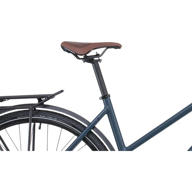 Ob ein Bike sich voll und ganz auf seinen Fahrer einstellt und ihm maximalen Zweiradgenuss verschafft, ist oft eine Sache von Details. Deshalb haben sie den Travelrahmen aus doppelt konifizierten Aluminiumrohren konstruiert, denen er sein geringes Gewicht und zugleich seine hohe Stabilität zu verdanken hat. Es gibt genügend Platz für robuste, komfortable 700C Laufräder mit bis zu 42 mm breiten Reifen. Und die leichte, präzise Aluminiumstarrgabel eignet sich sogar für Lowrider Gepäckträger. Außerdem ist ein semi-integrierter Gepäckträger mit dabei. Aufsitzen, losradeln, genießen!