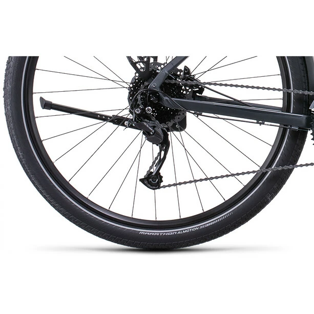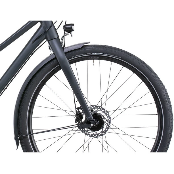 Wer sich für ein Cube Travel entscheidet, bucht das Abenteuer gleich kostenlos mit, weil dieses Bike alles mitbringt, was es auf Entdeckertour braucht: semi-integrierter Gepäckträger, extralange Schutzbleche, Seitenständer und eine per Dynamo am Vorderrad betriebene Lichtanlage. Mit der einfach bedienbaren, breit gefächerten Shimano Alivio 3×9-fach Schaltung wechselt man spielend leicht von Gang zu Gang und meistert jede Route und jeden Anstieg souverän. Wetterunabhängig sicheres Bremsen ist das Spezialgebiet der leistungsstarken hydraulischen Shimano Scheibenbremsen. Bleibt die Frage, wo der nächste Trip hingeht.