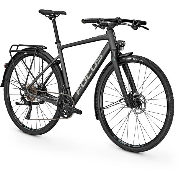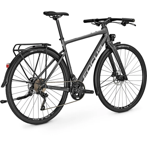 Leichter, robuster Aluminium-Rahmen & Carbon-Gabel mit integrierter C.I.S. Kabelführung, sowie eigens entwickeltem Gepäckträger, Schutzblechen und starker Lichtanlage