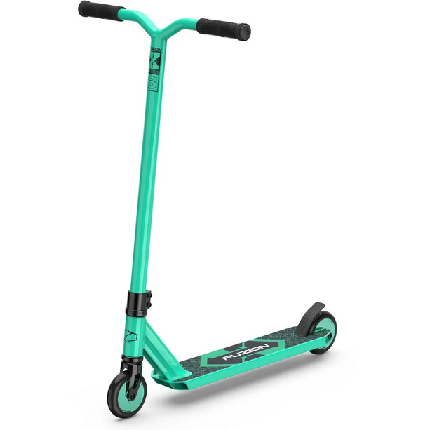 Der hochfeste Stahllenker ausgestattet mit den Fuzion Composite Pro Grips, bietet maximale Kontrolle und Komfort. Schnelle, geschmeidige Cast 85 PU-Räder mit ABS-Composite-Naben liefern kompromisslose Performance. Ebenfalls neu in diesem Jahr ist Fuzions spezielle Nylon/Stahl-Bremse für leise, schnelle Stopps.
