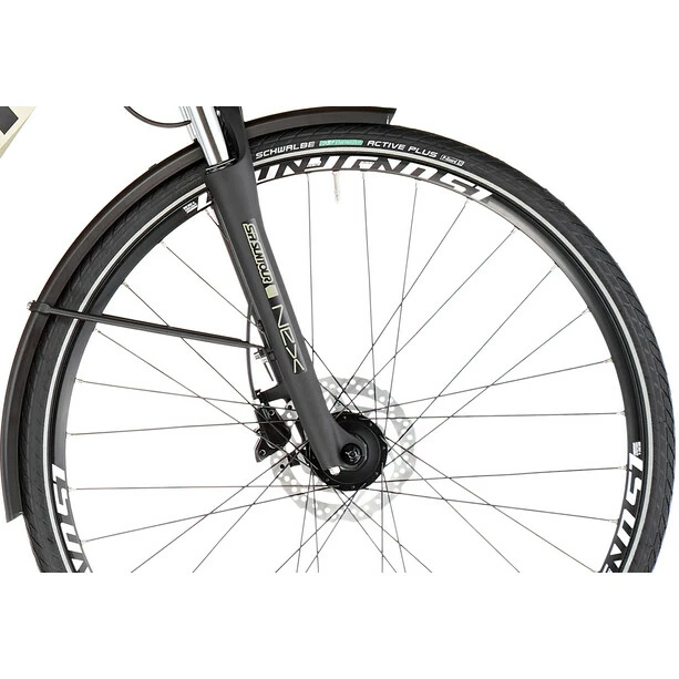 Ob in der Stadt oder im Gelände: Die hydraulischen Scheibenbremsen greifen auch bei Nässe zuverlässig sicher und schnell, lassen sich gut dosieren und sind nicht anfällig in Sachen Schmutz oder Performance-Verlust.