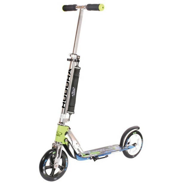 Mit dem BigWheel 205 von HUDORA ist man super ausgerüstet, um durch den Großstadtdschungel zu düsen. Dank seines Heavy Duty-Klappmechanismus und dem justierbaren Umhängegurt kann er nach der Benutzung einfach geschultert werden. Das ist vor allem für Menschen von Vorteil, die das Verkehrsmittel auf dem Weg zur Arbeit oder zur Schule wechseln müssen. Denn so kann man schnell zum Auto oder zur Straßenbahn gelangen und dort angekommen, den Big Wheel schnell zusammenklappen. Der Scooter ist nicht nur zusammenklappbar, sondern auch in seiner Einstellung sehr flexibel: der Lenker ist von 79 auf 104 cm höhenverstellbar. Der integrierte Ständer ist praktisch für all diejenigen, die mehrere Stopps hintereinander machen, wie etwa beim Einkaufen oder Einsammeln der Freunde zum gemeinsamen Scooterfahren. Das XL-Pro Low Rider Deck des Scooters ist vollkommen auf Komfort ausgerichtet. Das breite Deck bietet einen bequemen und sicheren Stand. Durch das sehr tief liegende Deck, fährt sich der Scooter besonders smooth. Die PU gegossenen High-Rebound-Rollen sind langlebig und super komfortabel für alle, die gerne schnell fahren. Leise und leichtlaufende ABEC 5 Kugellager aus Chrom und das minimierte Gewicht des Scooters aus hochwertigem Aluminium spielen in Punkto Schnelligkeit ebenfalls eine große Rolle. Der integrierte breite Spritzschutz des Rollers sorgt dafür, dass man trotz allen Spaßes nicht dreckig wird. Es kann also ordentlich Speed aufgenommen werden. Ein Sicherheitsplus bieten die Reflektoren an Deck und Lenker. Sie sorgen dafür, dass man den Roller auch im Dunkeln gut erkennen kann.