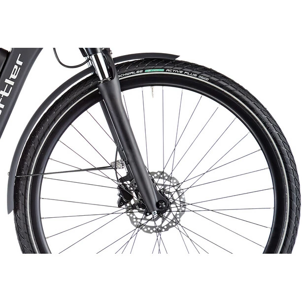 Das E-Bike der neuesten Generation überzeugt durch seinen leistungsstarken Shimano STePS E-5000 Mittelmotor. Trekking Biker*innen kommen so nicht nur schneller voran, sondern können auch erheblich weitere Strecken zurücklegen. Neben dem modernen Elektroantrieb überzeugt das Montana vor allem auch durch seine durchdachte und auf Langlebigkeit setzende Detailausstattung. Für die richtige Gangwahl sorgt die Shimano Acera 9 Gang Schaltung, gebremst wird mit hydraulischen Shimano MT200 Scheibenbremsen, die zu jedem Zeitpunkt und bei jeder Witterung für absolute Verlässlichkeit sorgen. Die 50 mm Federweg der Suntour Federgabel sorgen auch auf Waldwegen für komfortables Fahren. Schwalbe Energizer Reifen überzeugen durch geringen Rollwiderstand und einen sehr guten Grip. Fahrkomfort ist somit garantiert.