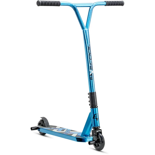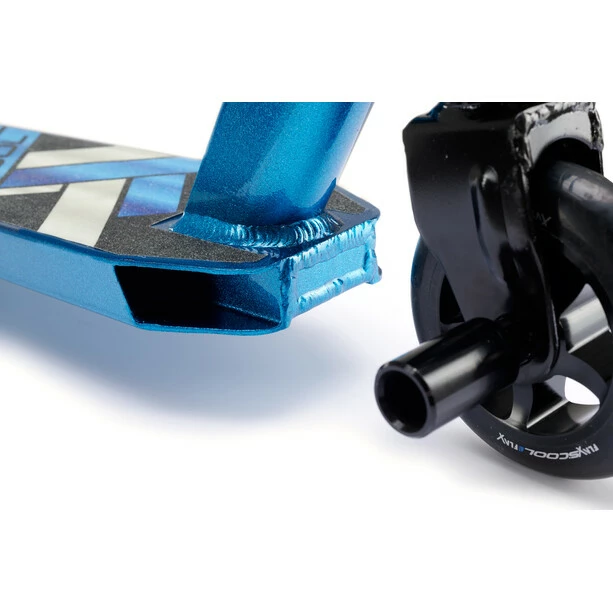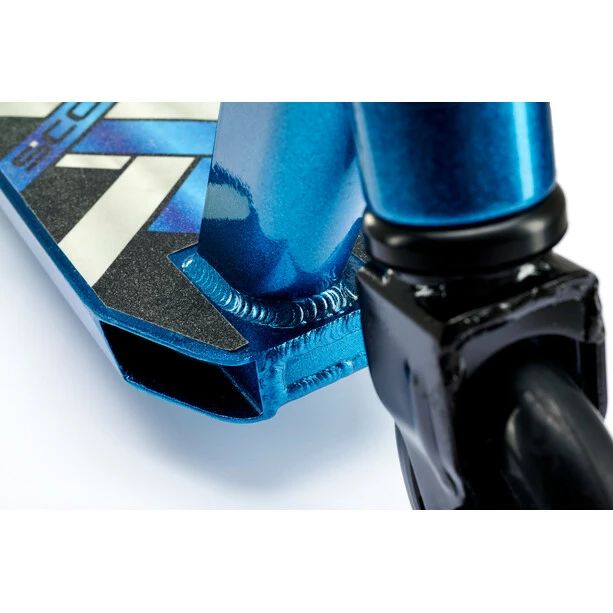 Der flaX 8.6 Stunt-Scooter in funkelndem „Flash Blue“ oder „Flash Gold“ ist die robustere Variante eines Scooters. Optimal geeignet für Tricks und Fahrten auf der Rampe.