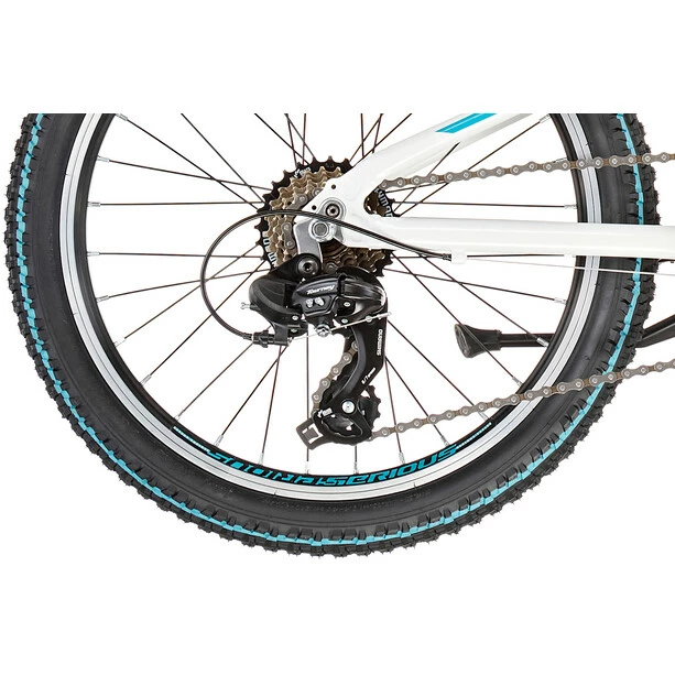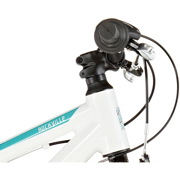 Das sportliche Rockville ist ein Kinder-Mountainbike der Extraklasse. Der leichte Alurahmen hat nicht nur eine robuste Ausstattung, sondern durch das stark abfallende Oberrohr auch eine sehr kindgerechte Geometrie die ein sicheres Handling des Rockvilles ermöglichen. Die Shimano Tourney 7-Gang Kettenschaltung bietet ausreichend Übersetzung für die ersten längeren Ausfahrten und über den Shimano Drehgriff wird der Schaltvorgang sauber und schnell vollzogen.