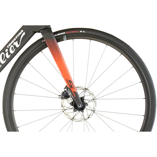 Cento10 SL ist sowohl als Felgenbremse- als auch als Scheibenbremse-Version erhältlich. Das Standardfahrrad wird mit nominalen 25mm-Reifen montiert. Der Rahmen kann Räder mit Reifen bis zu einer maximalen realen Breite von 28 mm aufnehmen.